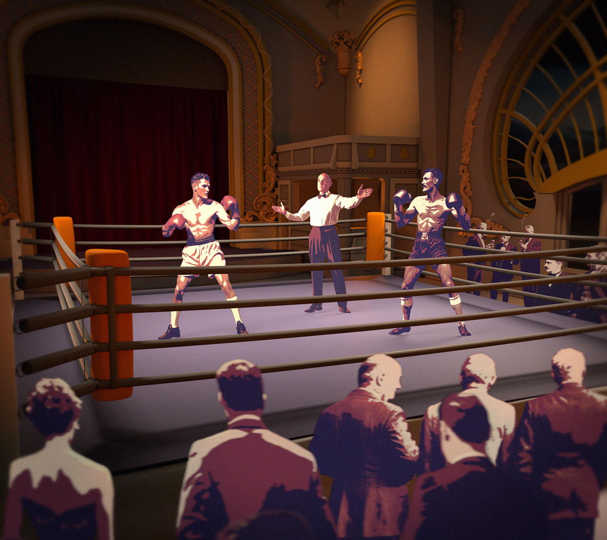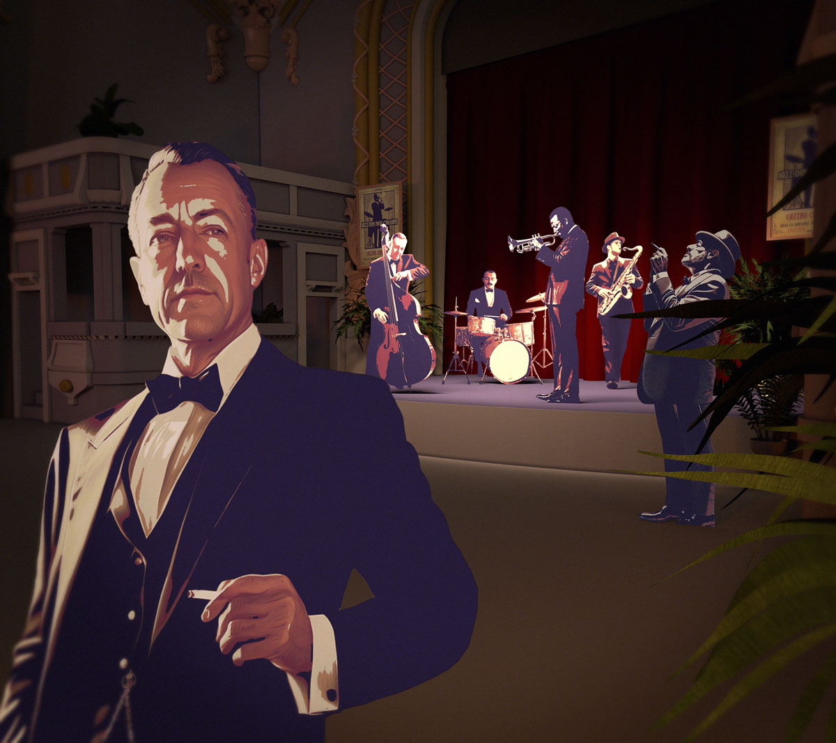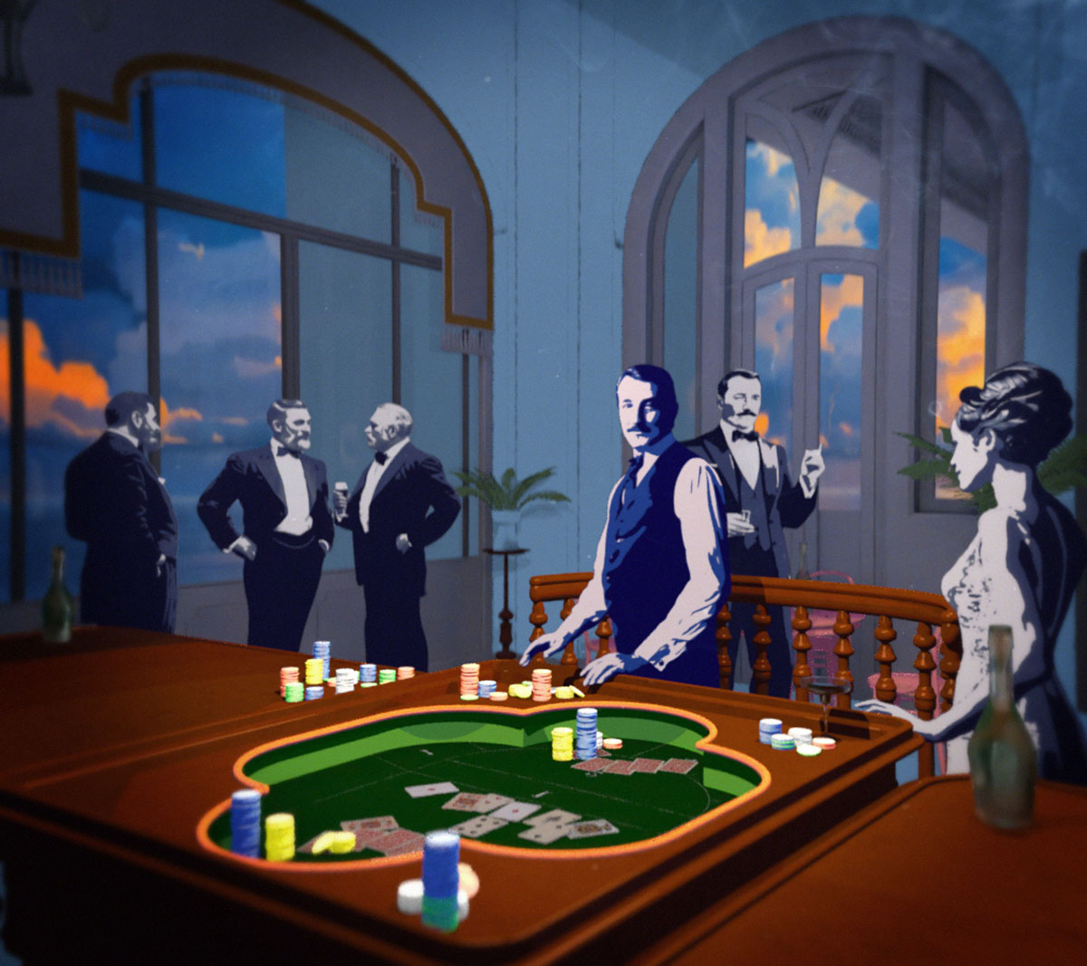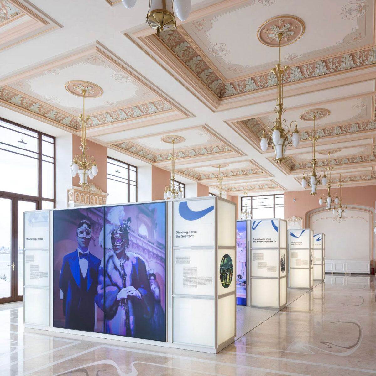 Drawing on extensive research of archival photographs, historical texts, and a detailed 3D reconstruction of the building—both exterior and interior—we created eight evocative scenes illustrating defining moments of the era: board games, rolling waves, elegant promenades, lively nightlife, and other emblematic experiences of the period.